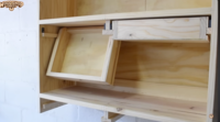 | Beschreibung | 1) Leiste + Rolle am oberen Rand der Schublade für die Schub-Kipp-Funktion. 2) Leiste mit schrägt geschnittener Stopper-Kante am unteren Ende der Schublade (um Wackeln zu vermeiden). |